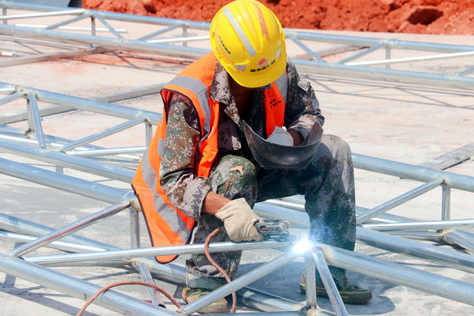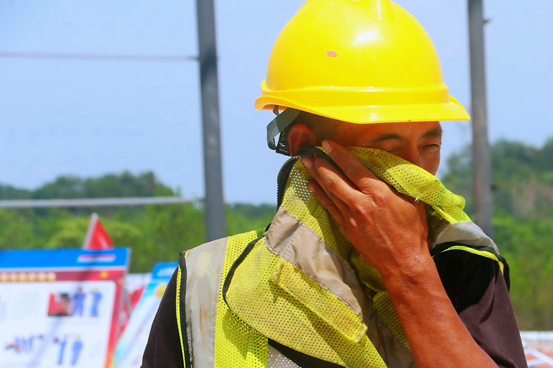 “看著廠房在自己的手中一點點從無到有搭建起來,與這種成就感比起來,曬一點簡直不值一提!”上午10點,烈日炎炎下的施工現(xiàn)場沒有任何遮擋,火辣辣的陽光高直接照射在高空作業(yè)人員張工身上,談及高溫作業(yè),他更相信堅守的力量。在梨東項目,像張工一樣的人還有很多,他們頭頂驕陽,忍受著烈日“烤”驗,堅守崗位,在現(xiàn)場規(guī)定的夏季有限作業(yè)時間內,用行動擔起自己的責任。