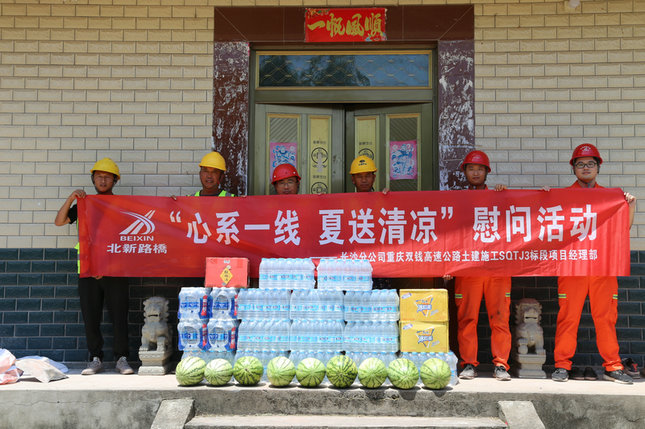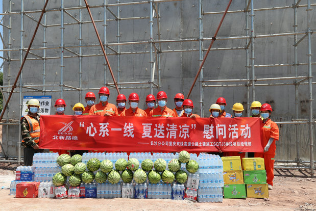 為確保廣大員工和勞務(wù)工身體健康和生命安全,全身心投入到繁忙的生產(chǎn)建設(shè)中,該標(biāo)段及時(shí)為他們發(fā)放了涼茶、西瓜、礦泉水、仁丹、藿香正氣水等防暑降溫物資,將組織的關(guān)愛送到他們的心坎上,極大鼓舞了一線建設(shè)者的信心和斗志。
