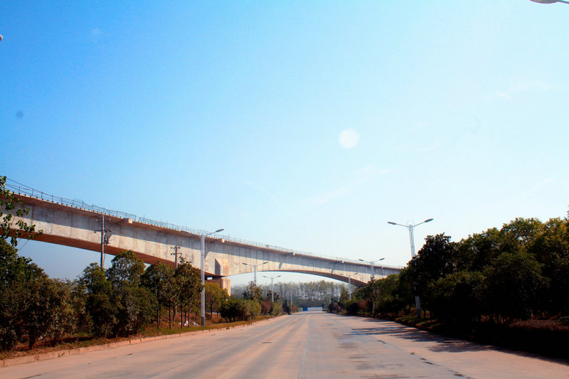 由武漢公司承建的新港鐵路3標項目,全長22.767公里,共有特大橋5座,各種大中小橋17座,其中繞城特大橋穿越陽邏城區(qū),上跨武漢繞城高速,沿途交通錯綜復雜,安全管理壓力大。全長1360米,共計34墩2臺,連續(xù)梁3跨,最大跨度115米?;A采用鉆孔樁基礎;橋墩為雙線圓端形實心橋墩,橋臺為矩形空心橋臺。