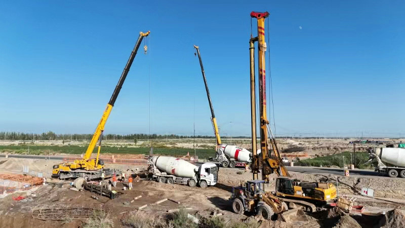 塔北二干渠大橋全長(zhǎng)308米,采用6x30m變寬現(xiàn)澆箱梁+3x40m 連續(xù)T梁組合,是該標(biāo)段最長(zhǎng)的大橋和重要的控制性工程,該大橋橫跨玉阿新公路、塔北二干渠及農(nóng)田機(jī)耕道,與柳源互通接壤。大橋樁基共有50根,最大孔深達(dá)60米,最大孔徑為2米,所處地質(zhì)條件復(fù)雜,存在較厚的粉土層,容易出現(xiàn)塌孔、擴(kuò)孔問(wèn)題。為加快施工進(jìn)度,保質(zhì)保量完成節(jié)點(diǎn)任務(wù),根據(jù)地質(zhì)條件和施工環(huán)境,項(xiàng)目多次組織召開(kāi)樁基施工技術(shù)質(zhì)量交流會(huì),多措施解決施工生產(chǎn)中安全質(zhì)量和施工進(jìn)度問(wèn)題。一是加強(qiáng)施工過(guò)程控制,實(shí)施監(jiān)理、技術(shù)員全程旁站,把控各個(gè)工序環(huán)節(jié)確保施工流程符合標(biāo)準(zhǔn)化規(guī)范要求,保障施工質(zhì)量;二是加緊資源調(diào)配與現(xiàn)場(chǎng)保障,合理調(diào)整人員、機(jī)械等資源,保障現(xiàn)場(chǎng)物資、機(jī)械供應(yīng)滿(mǎn)足施工需求,以滿(mǎn)足施工生產(chǎn)需求,保障施工進(jìn)度;三是加大施工現(xiàn)場(chǎng)安全巡查和督導(dǎo)力度,落實(shí)安全責(zé)任制,將技術(shù)交底內(nèi)容提前向所有作業(yè)人員進(jìn)行現(xiàn)場(chǎng)交底,及時(shí)處理施工過(guò)程中出現(xiàn)的問(wèn)題,確保樁基快速成孔。